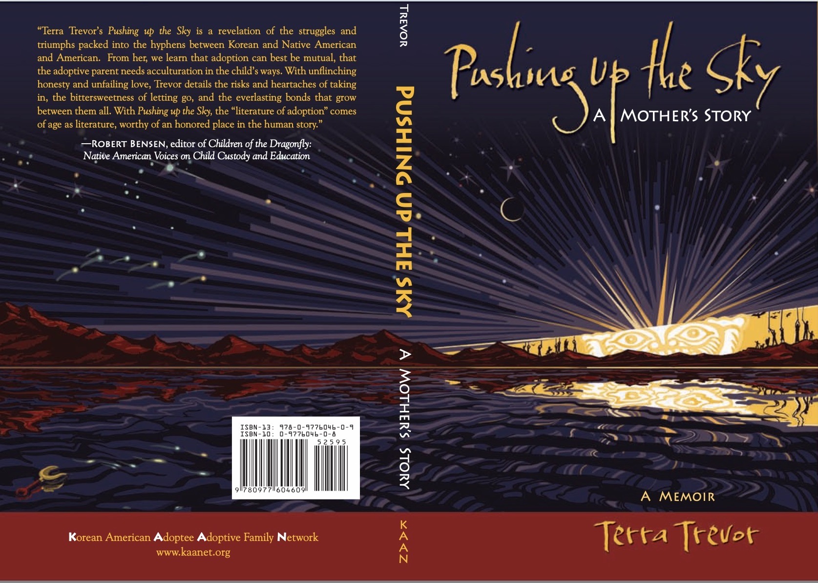 “Terra Trevor’s ‘Pushing up the Sky’ is a revelation of the struggles and triumphs packed into the hyphens between Korean and Native American and American. From her, we learn that adoption can best be mutual, that the adoptive parent needs acculturation in the child’s ways. With unflinching honesty and unfailing love, Trevor details the risks and heartaches of taking in, the bittersweetness of letting go, and the everlasting bonds that grow between them all. With ‘Pushing up the Sky’, the ‘literature of adoption’ comes of age as literature, worthy of an honored place in the human story.”